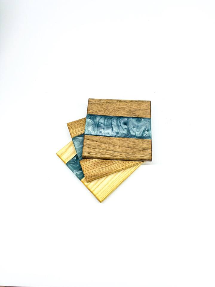 Artistic Epoxy Resin and Stone Coasters Handmade Craft with Bold Color Swirls, Glossy Finish, and Unique Decorative Designs