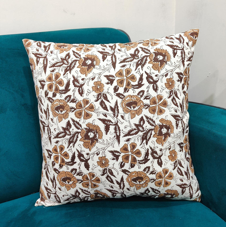 Artistic Floral Hand Block Printed Cushion Cover With Floral & Leaf Patterns For Living Area Chair Couch Home Styling