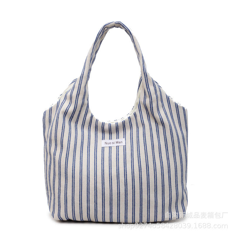 Artistic Girl Tote for Women 2025 New Summer Striped Shoulder Large Capacity Commuter Casual Canvas Bag