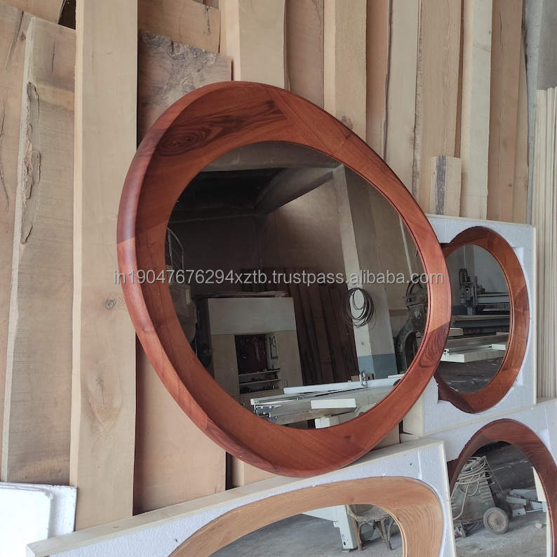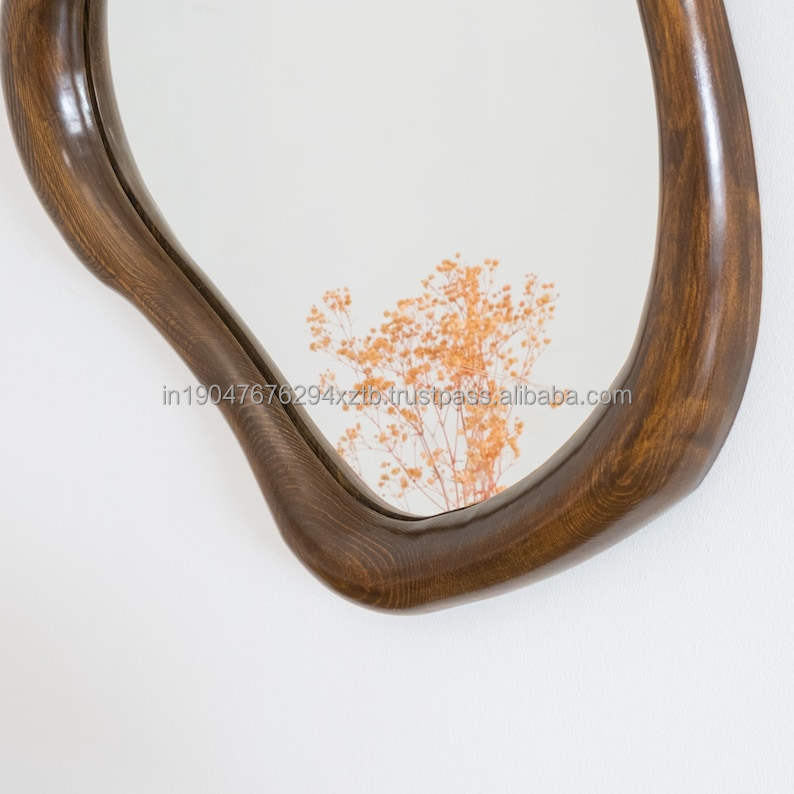 Artistic Handmade Art Deco Wooden Wall Mirror with Unique Asymmetrical Carved Design Eco-Friendly Lightweight