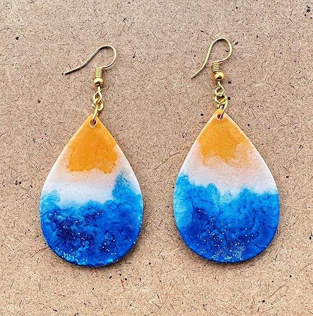 Artistic Handmade Resin Earrings With Dual Tone Effect Romantic Real Flower Resin Earrings For Wedding Gift by CRAFT ZONE EXPORT