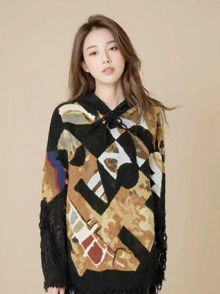 Artistic Intarsia Wool Cloak-Sonth African Masterpiece Design Unique Knitwear China 7-Day Sample Lead Time