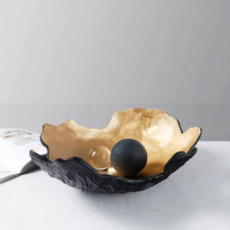 Artistic Shape Golden And Black Metal Decorative Bowl Elegant Designer Accent Ideal For Home Decor Tabletop Display And Styling