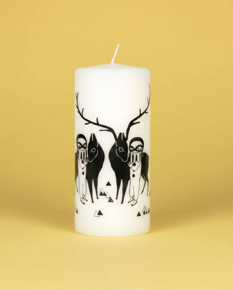 Artistic Soy Wax Eco-Friendly Pillar Candle Black White Printed for Coffee Tables Shelves Living Rooms Christmas Easter Gifting