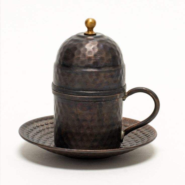 Artistic copper hammered tea cup and saucer for vintage theme kitchen decor and gifting with old style finished