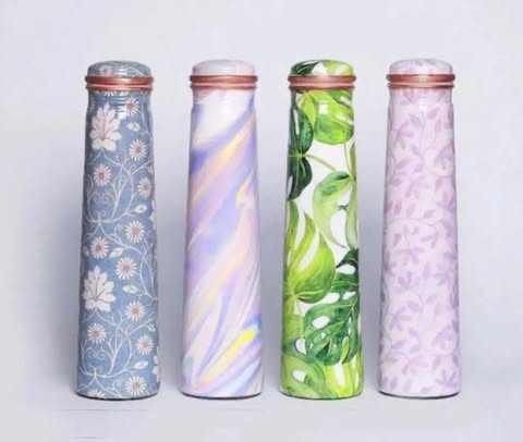 Artistic copper water bottle with floral printed work design suitable for eco conscious preferring sustainable natural products