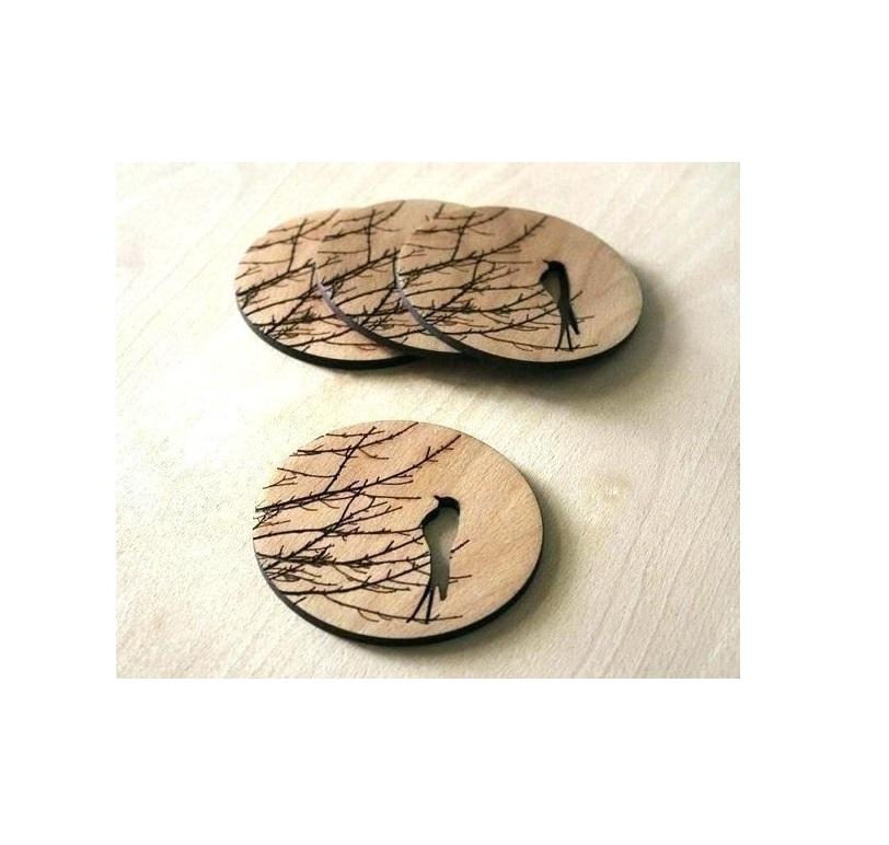 Artistic handcrafted wooden coaster perfect for rustic kitchen setting and elegant home table surface protection