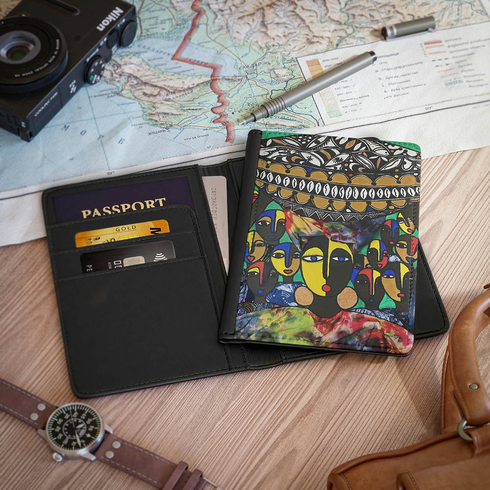 Arugba Black PU Faux Leather Passport Cover with Inner Pockets and Microfiber Lining