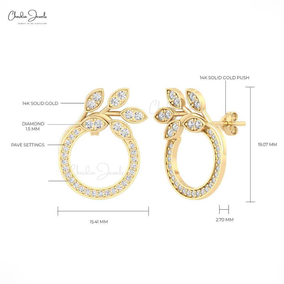 Asian Manufacturers Floral Stud Earrings for Women 14k Solid Gold Round Cut 1.5mm Pave Diamond Studs Personalized Fine Jewelry