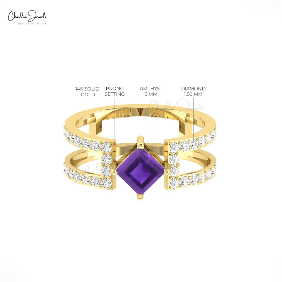 Asian Manufacturers Natural 5mm Square Cut Amethyst & Diamond Couple Ring 14k Real Gold Wedding Rings For Women Wholesale Supply