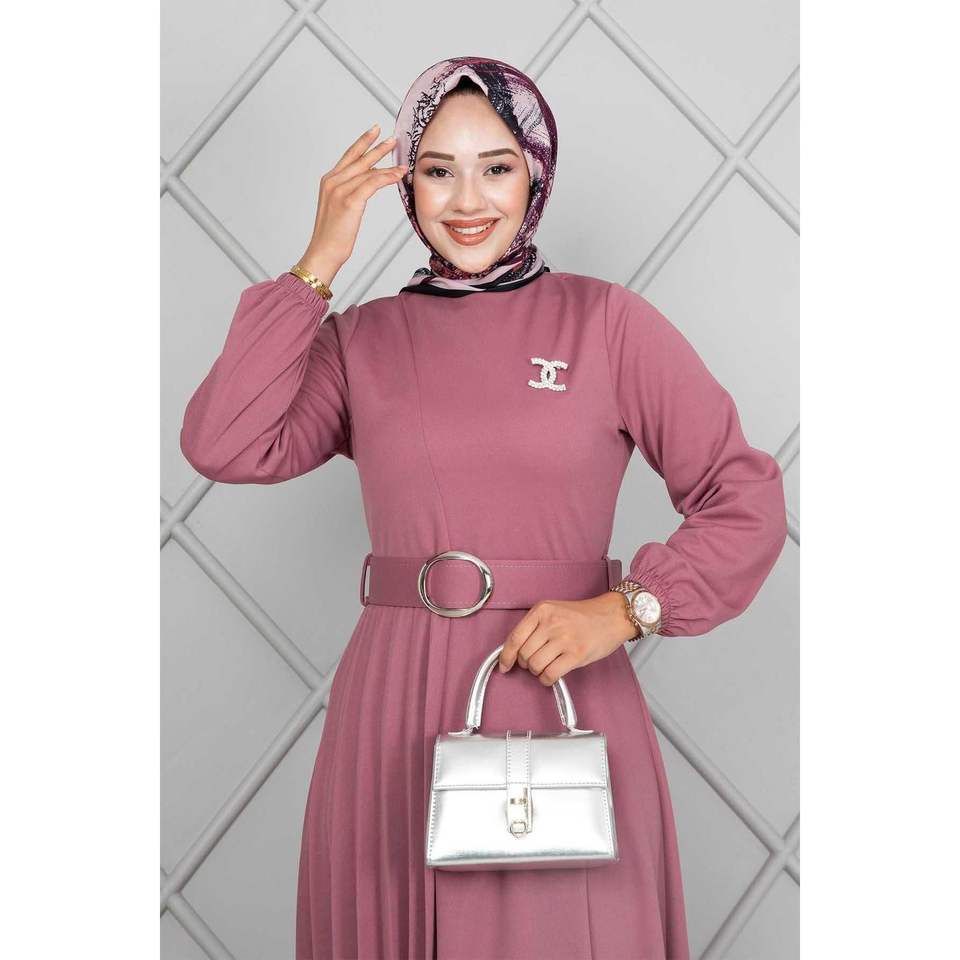 Asmara Belted Hijab Dress Dusty Rose