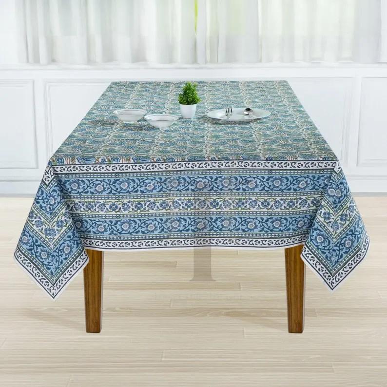 Asparagus Green Floral Table Cloth, Hand Block Print Cotton Cover, Indian French Country Style for Dining, Wedding, Home Gift