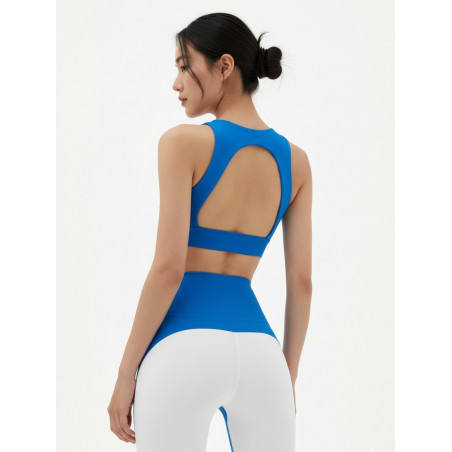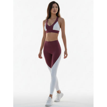Aspen Yoga Set High Waisted Leggings Sports Bra Blue White Color Block Design Elastic Waist Four-Way Stretch Women's Activewear