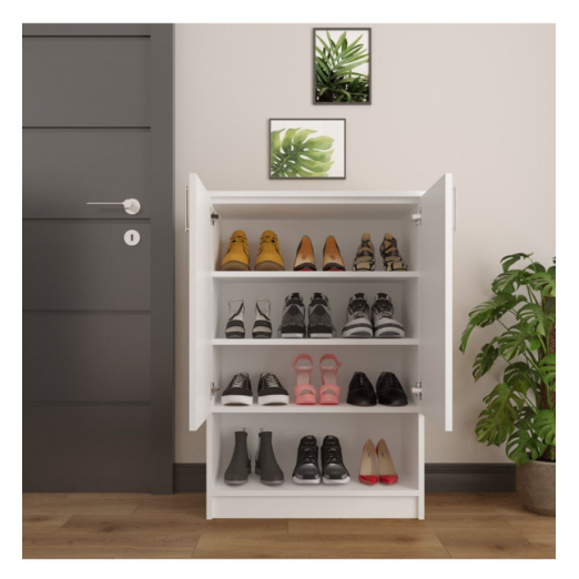 Asra Trend A-01 White 100% MDFLAM Double-Door Shoe Cabinet Modern Home Furniture with Extendable Open Bottom Shelf