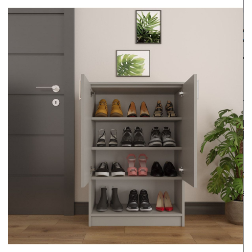 Asra Trend A-03 Ash Grey Shoe Cabinet %100 MDFLAM Double-Door Organizer with Open Bottom Shelf Easy Assembly Home Furniture