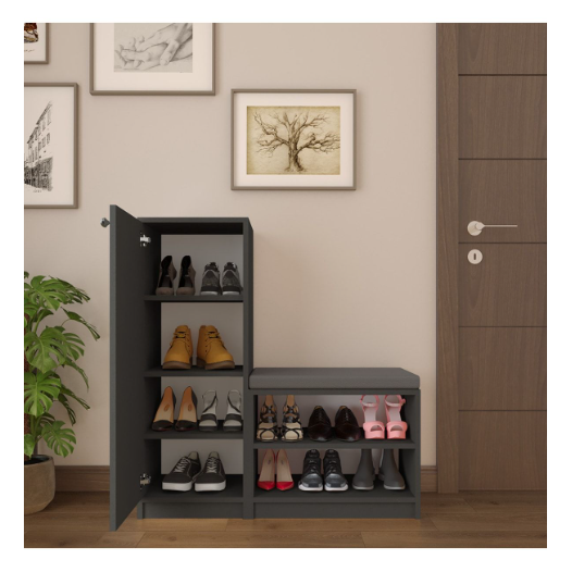 Asra Trend A-18 Anthracite (Dark Grey) Living Room Shoe Cabinet with Durable Steel and Padded Seating Bench Home Furniture