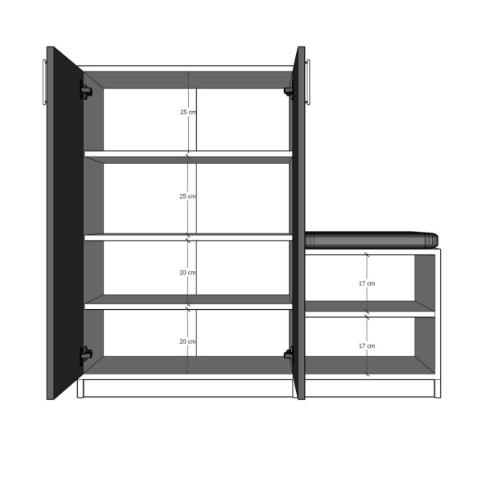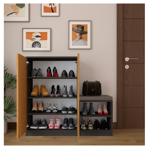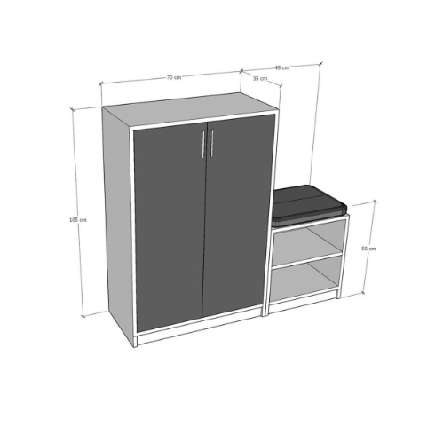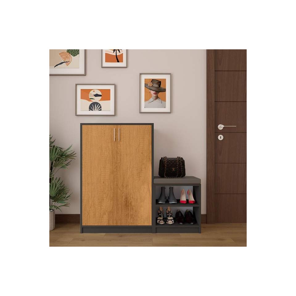 Asra Trend A-30 Dark Grey & Petra Two-Tone Shoe Cabinet 115cm %100 MDFLAM Seating Bench Double-Door Large Storage Shoe Racks