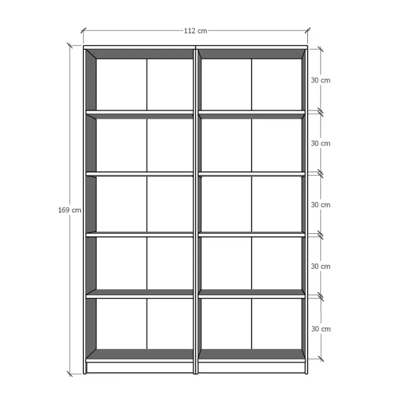 Asra Trend K-003 10-Tier Adjustable Modern Bookshelf MDF 2-Module Library Modular Office Home Storage Bookcases Bookshelves