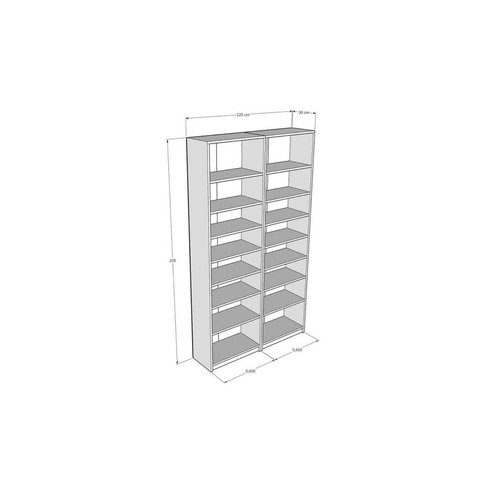 Asra Trend K-10 Safir Oak Two-Module Bookshelf 14-Shelf MDFLAM Modular Storage Unit for Home & Office