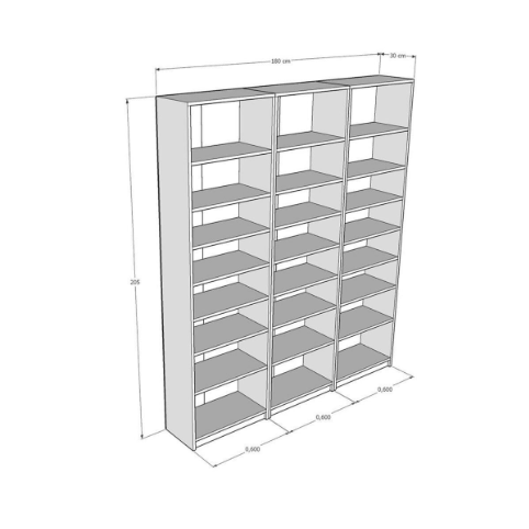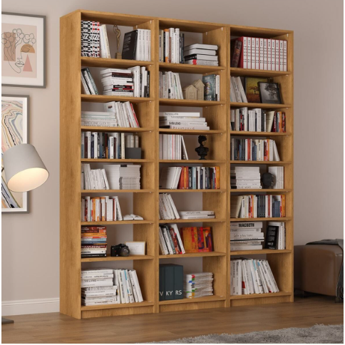 Asra Trend K-24 Modular Library System 180cm Wide 3-Unit Bookcase with Petra Stone/Concrete Finish 100% MDFLAM Bookshelves
