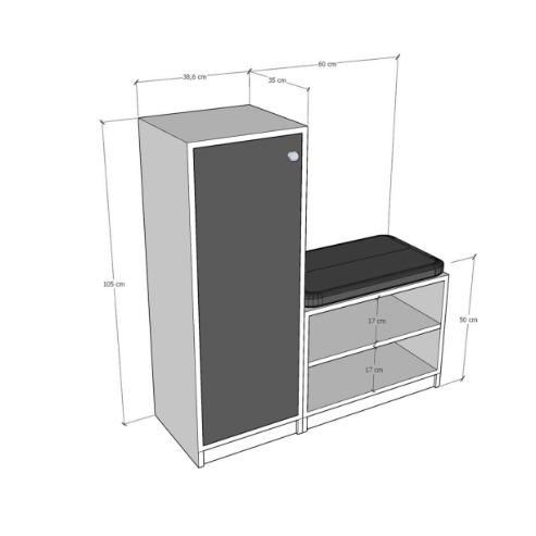 Asra Trend Petra Shoe Cabinet A-15 with Durable Cushioned Seating Bench Extendable Modern Style Living Room Furniture