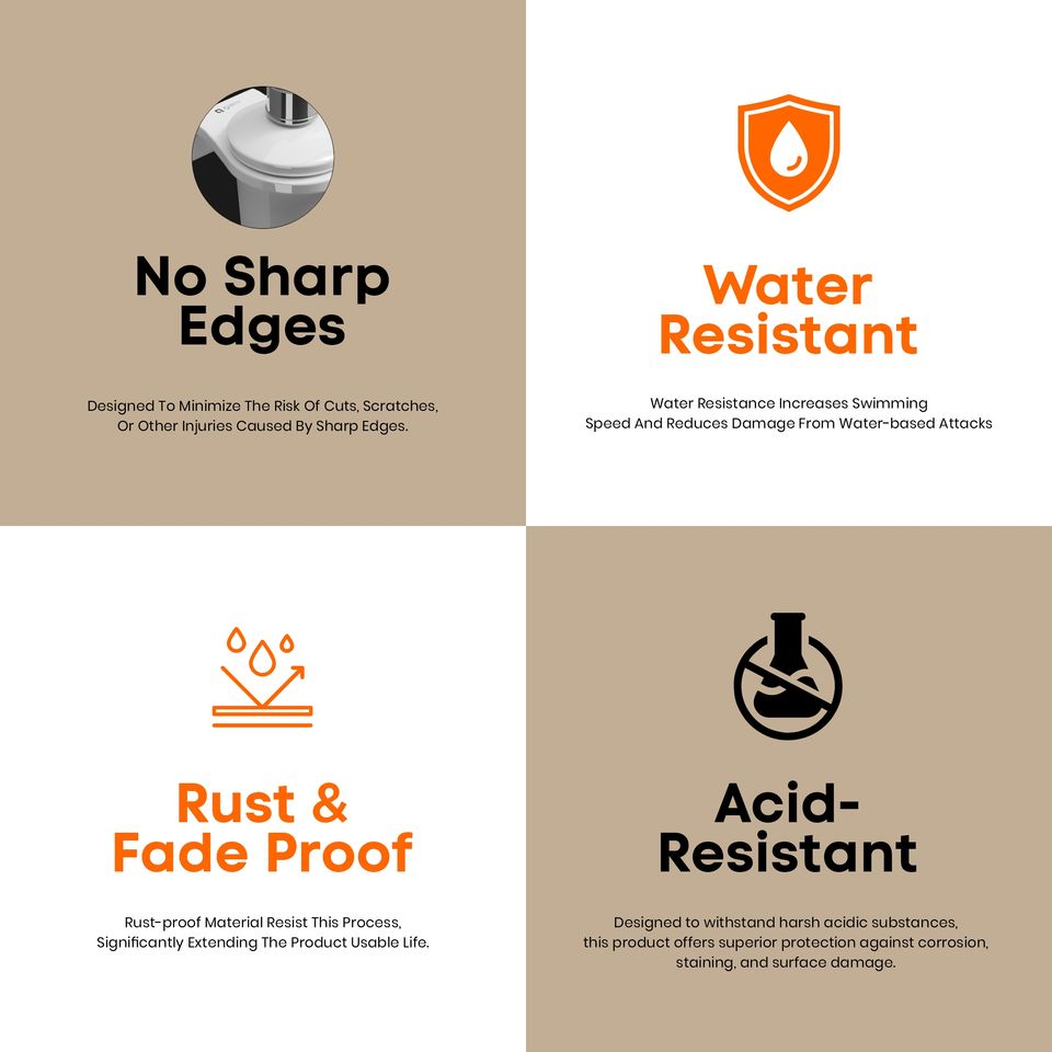 Rust & fadeproof, water resist, Anti bacterialFeature