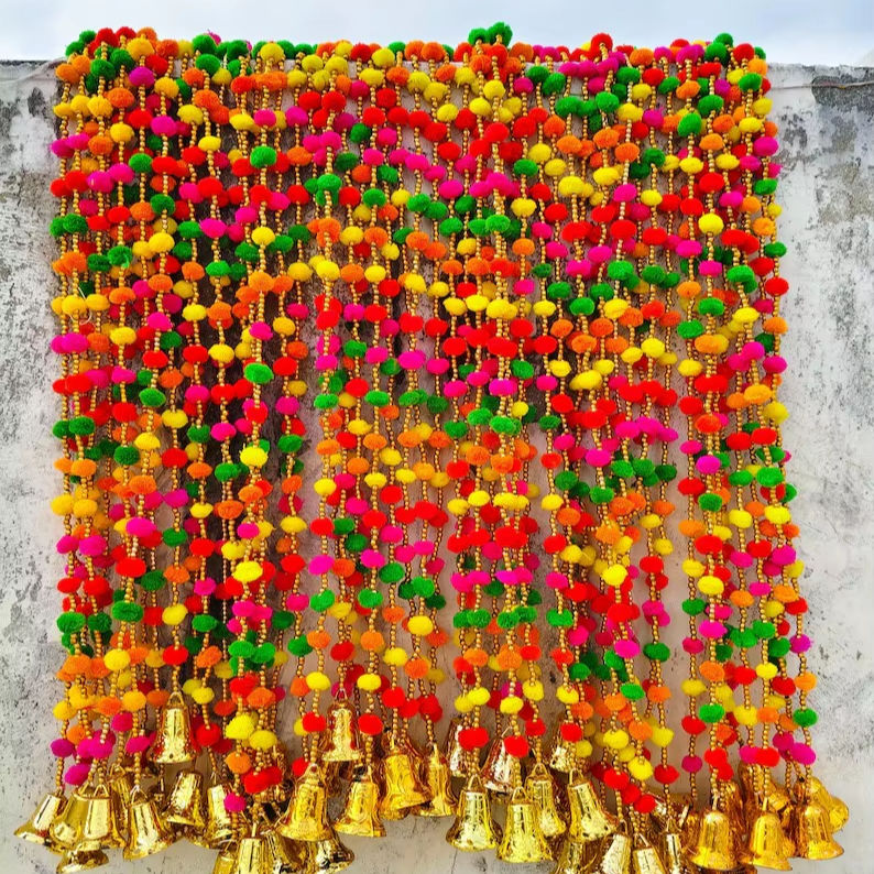 Keyword:pompom bell garland haldi engagement lohri jaggo decor