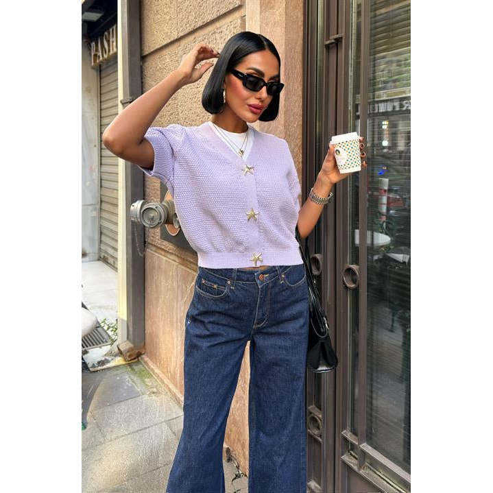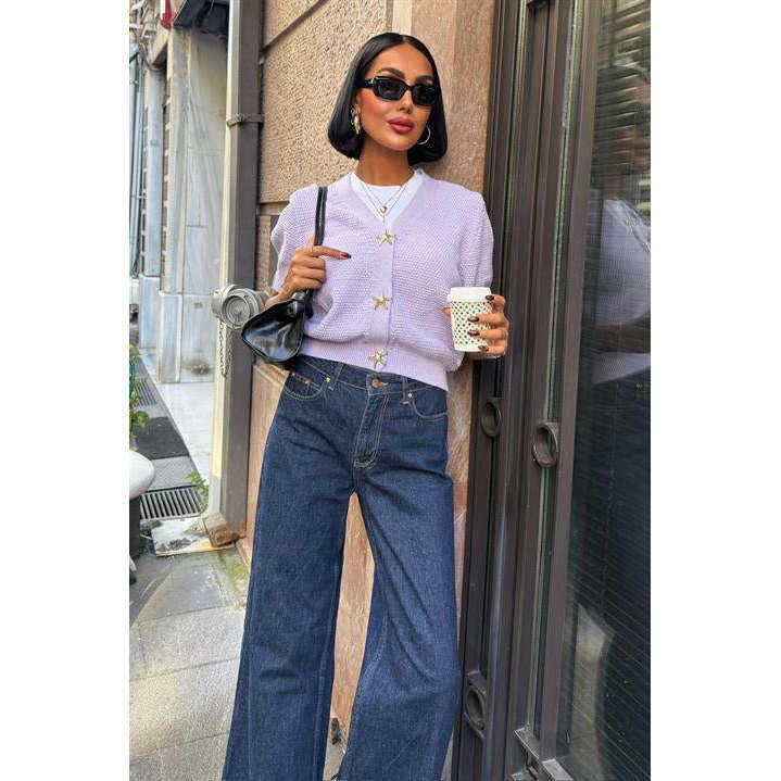 Asterya Casual Style Gold Buttoned Knit Cardigan 5182