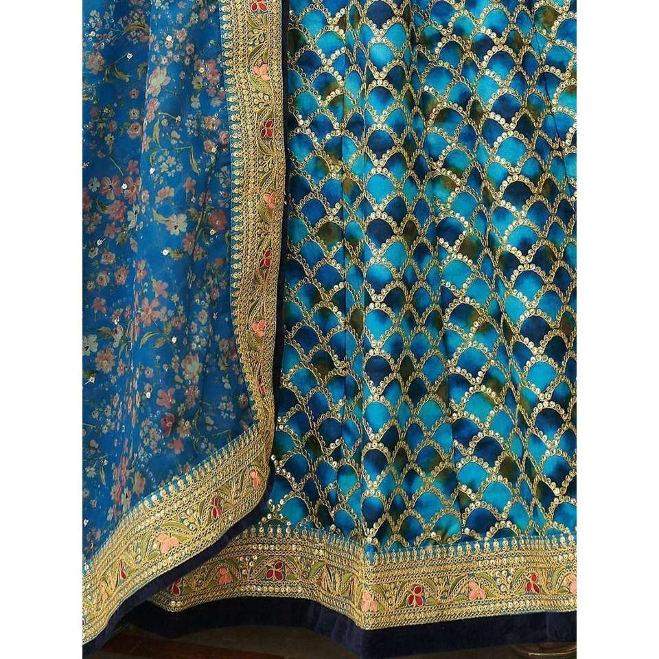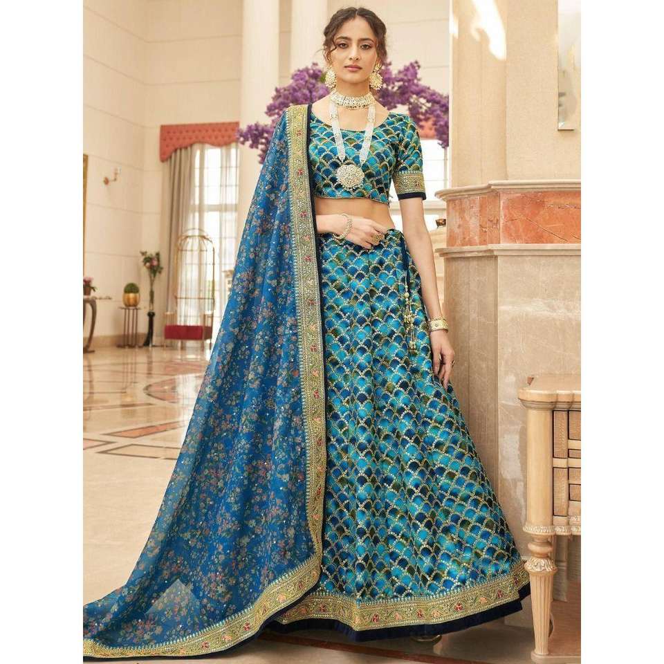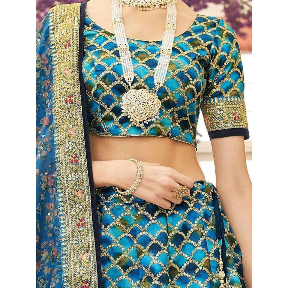 Astonishing Blue Sequins Work Art Silk Sangeet Wear Lehenga Choli
