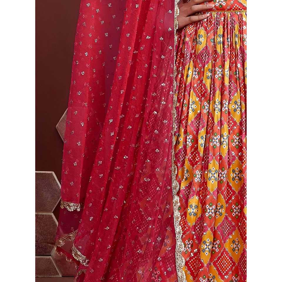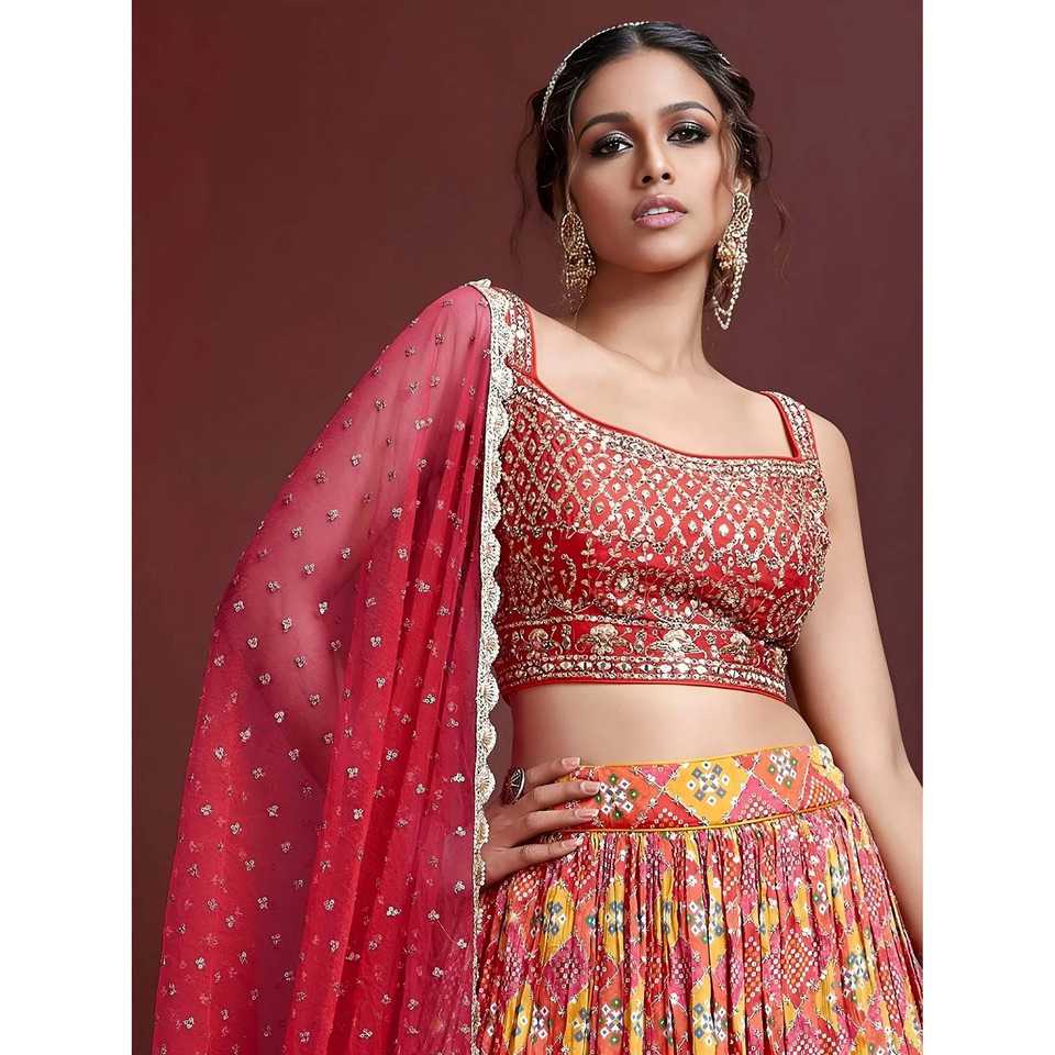 Astonishing Red Sequins Embroidery Chinon Silk Lehenga Choli for Wedding Cocktail/Reception Apparel Semi-Stitched Custom Size