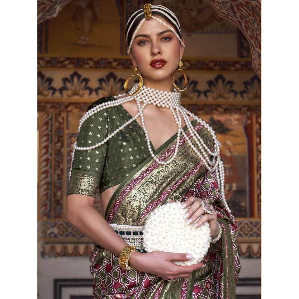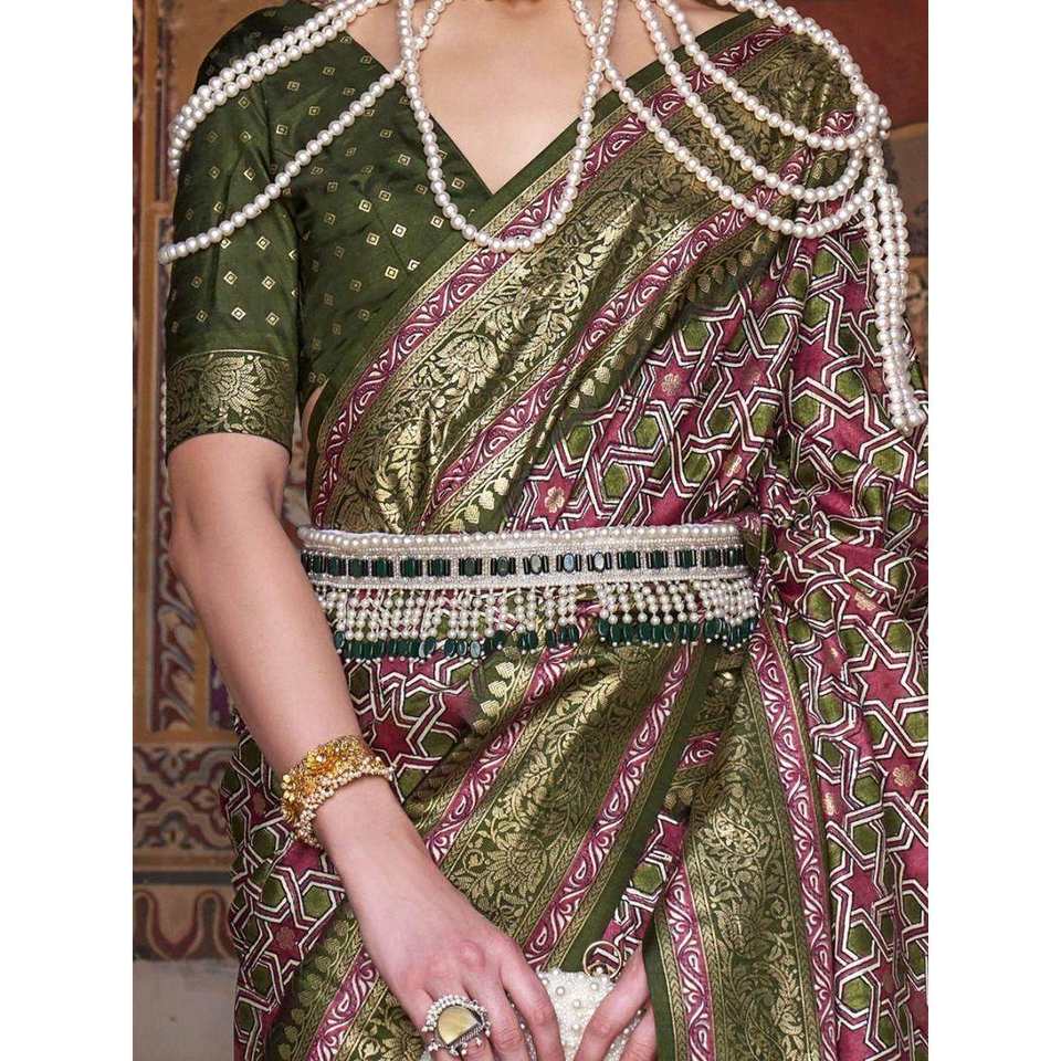 Astonishing Traditional Green Woven Silk Saree with Blouse for Weddings