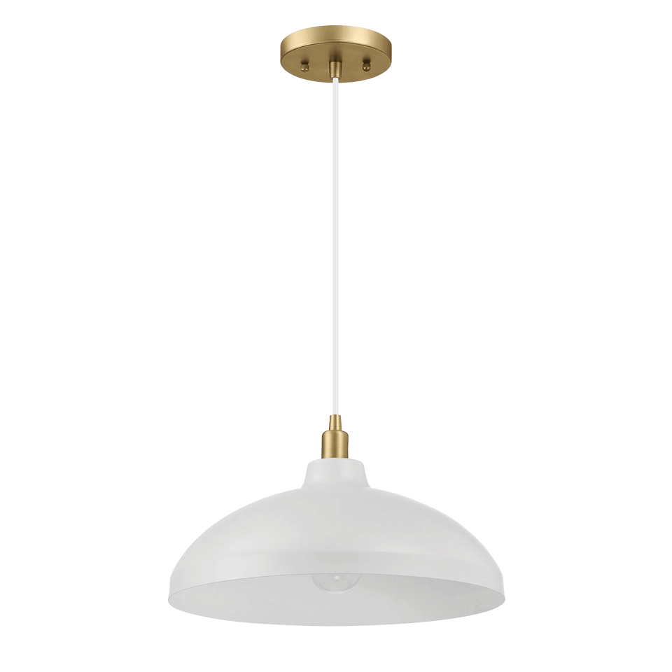 Astral 14\"D X 8\"H White Pendant Lamp Single Light with Golder Brass Finish for Entrance Kitchen or Island