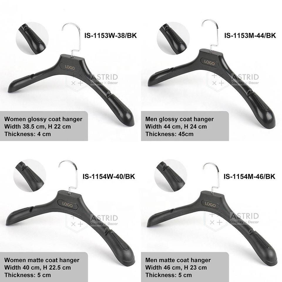 Astrid 40CM 46CM PS Custom Logo Black Plastic Coat Pants Hanger for Wardrobe and Clothing Organizer in Shops