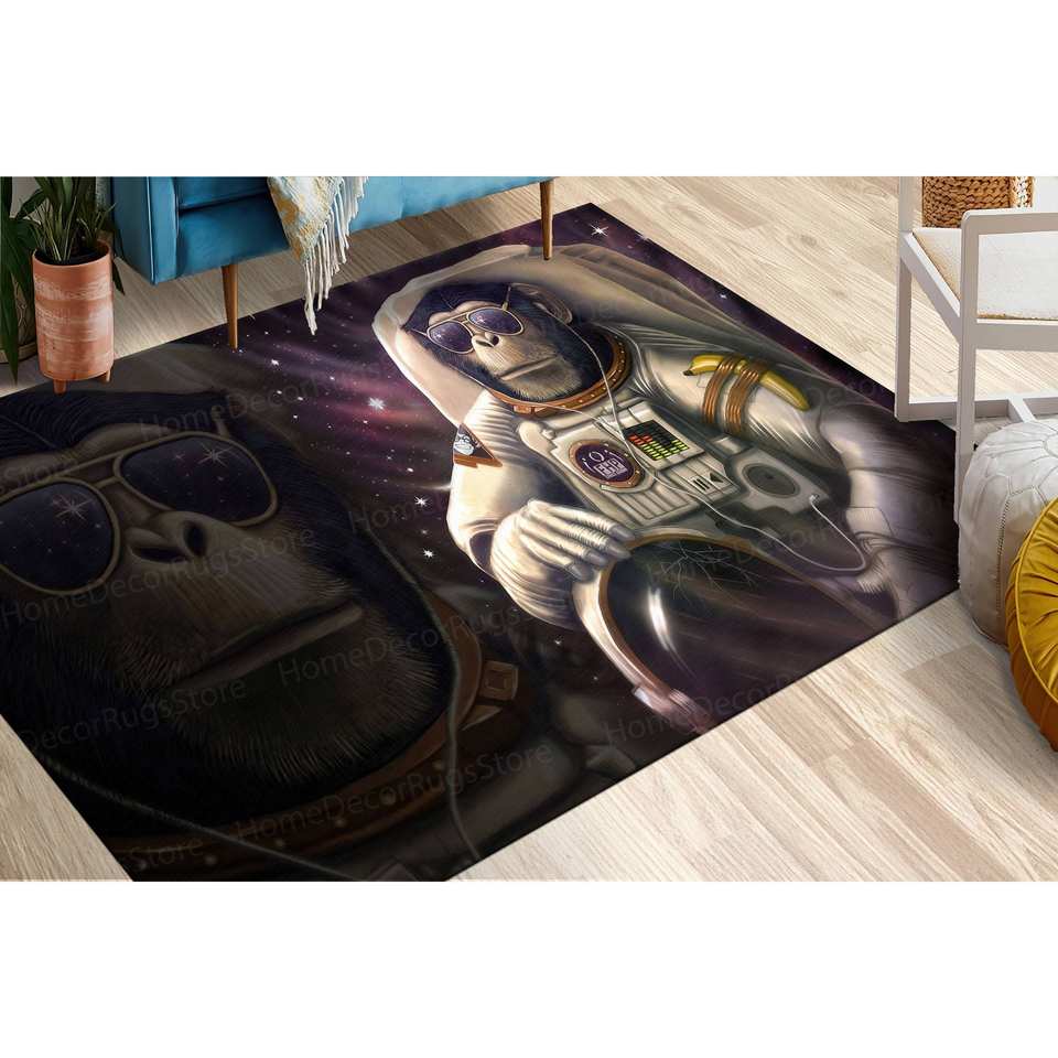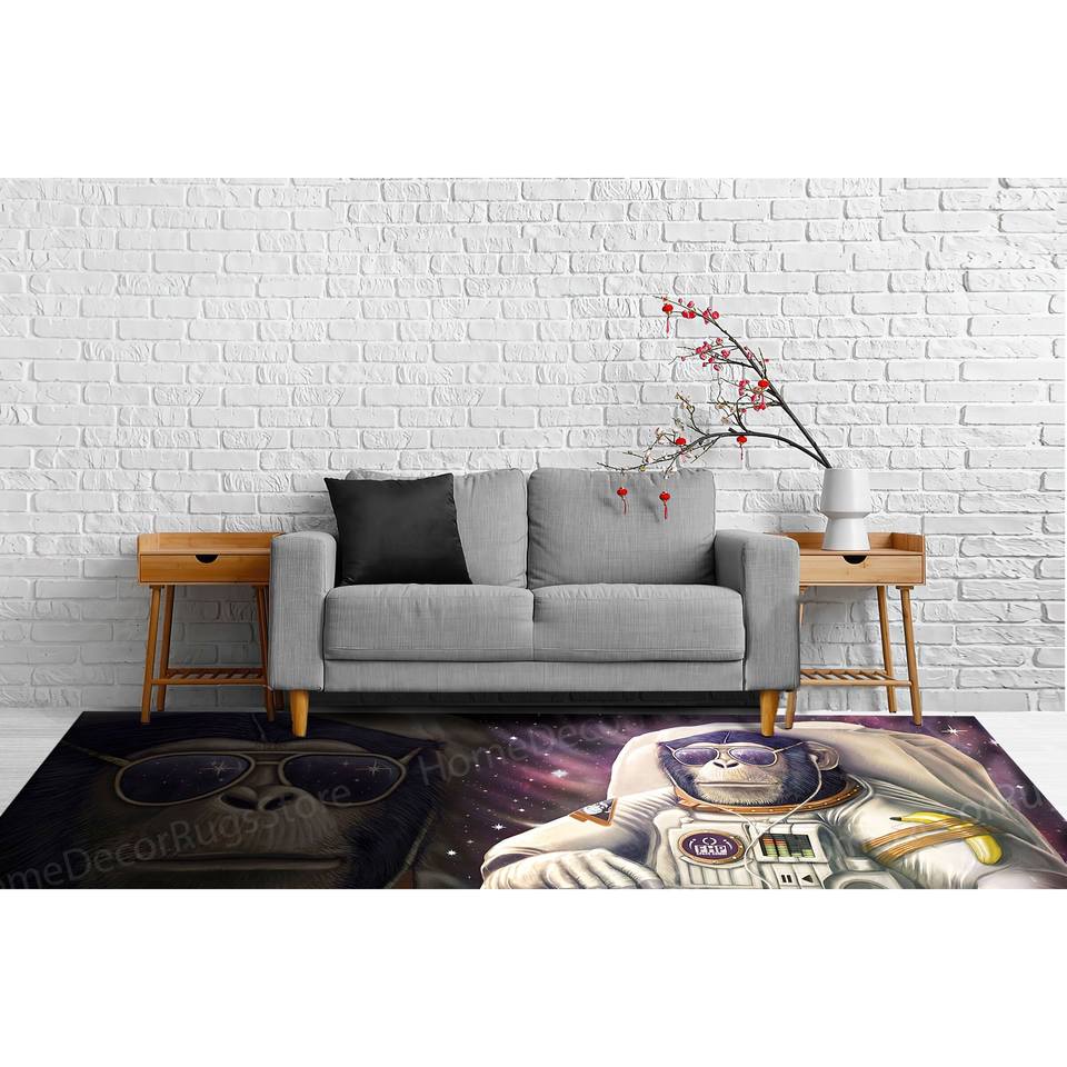 Astronaut Monkey Printed Rug - Unique 3D Design for Man Cave,Nonwoven Thin Rug