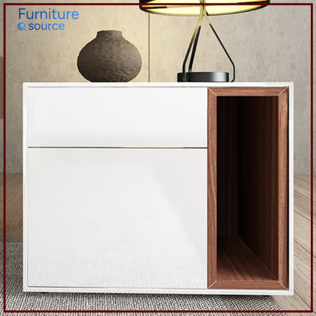 Asymmetrical Drawer Nightstand, White and Wood Nightstand from Vietnam, Unique Design for Modern Rooms