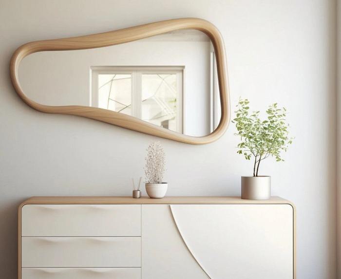 Asymmetrical Solid Wood Wall Mirror Rustic Organic Frame for Bathroom And Living Room Decor