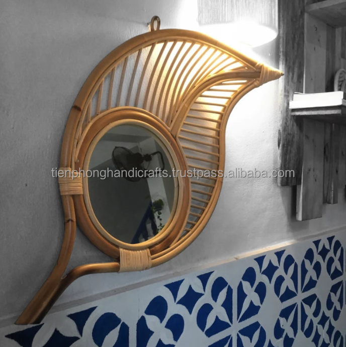 Asymmetrical Wall Hanging Dressing Mirror Rattan