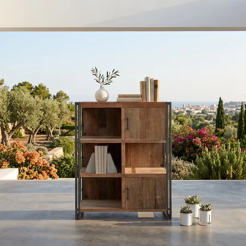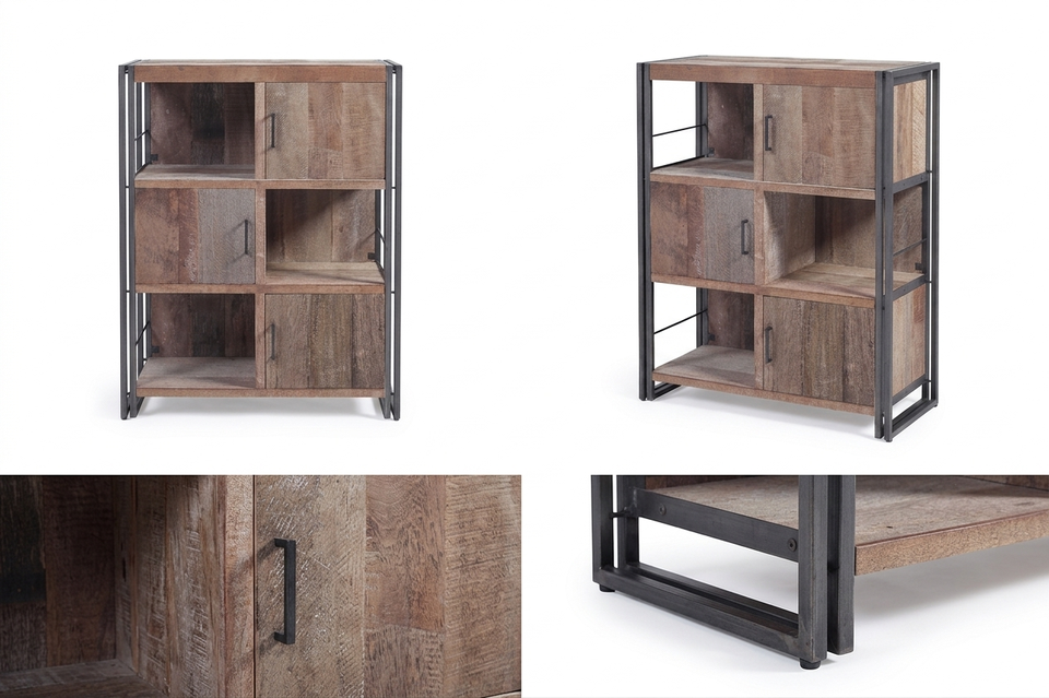 Aterna Rack Eco-Friendly Durable Rustic Reclaimed Wood Iron Frame Industrial Storage Bookcase Cabinet Living Room