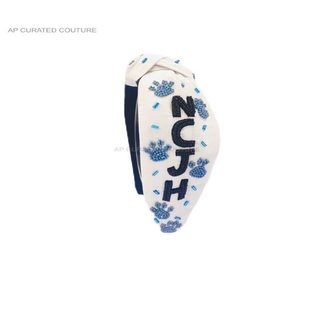 Athleisure Inspired Headbands New Team Sports Popping Beauties Blue & White Headpiece Amazing Crystal Rhinestone Pearl Jeweled.