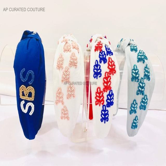 Headbands casual Random beaded Top Knotted Headband Indian Beadwork Hand Embellished Beaded Headband