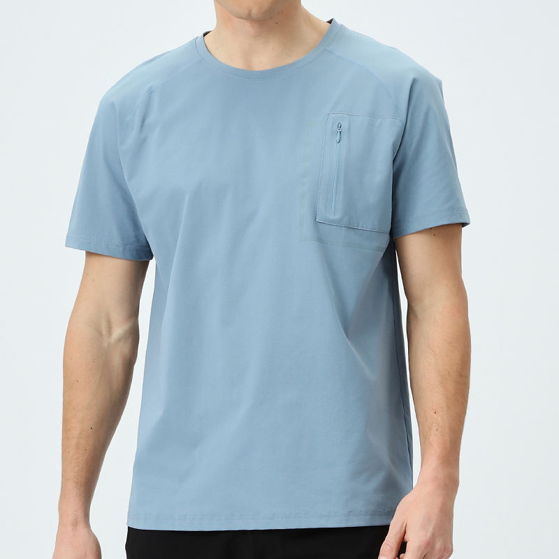 Athletic Quick Dry Left Chest Zipper Pocket Plain Tshirt for Printing Tshirts Wholesale Tshirt for Men