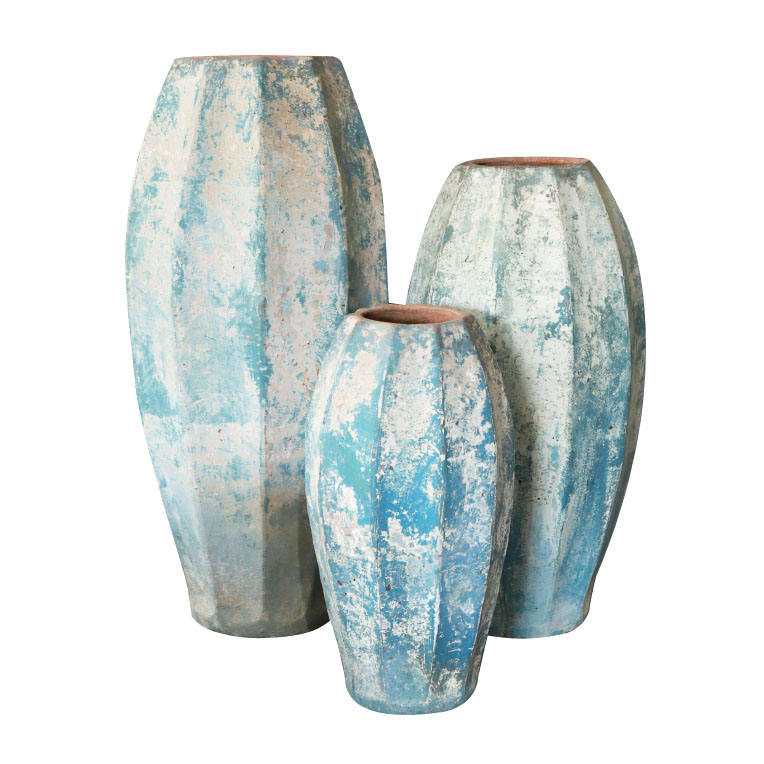 Atlantis AN902H141 Modern Ceramic Planter with Galvanized Finish Blue White Round Design for Garden & Home Decoration