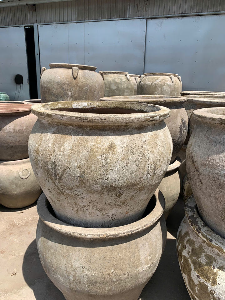 Atlantis Home Garden Polystone Fiber Pot Narrow Old Planter Box Flower Pots Bubble Glazed Ceramic Planters Handmade Pottery