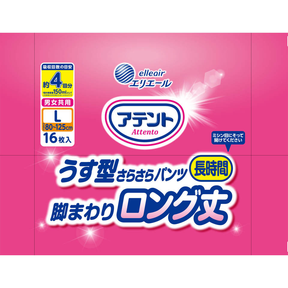 Attento Ultra Thin Adult Pull-Up Diaper Pants L Size 16 | Long Leg Fit | Unisex | 4 Times Absorbency | Japan