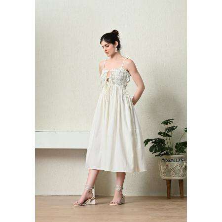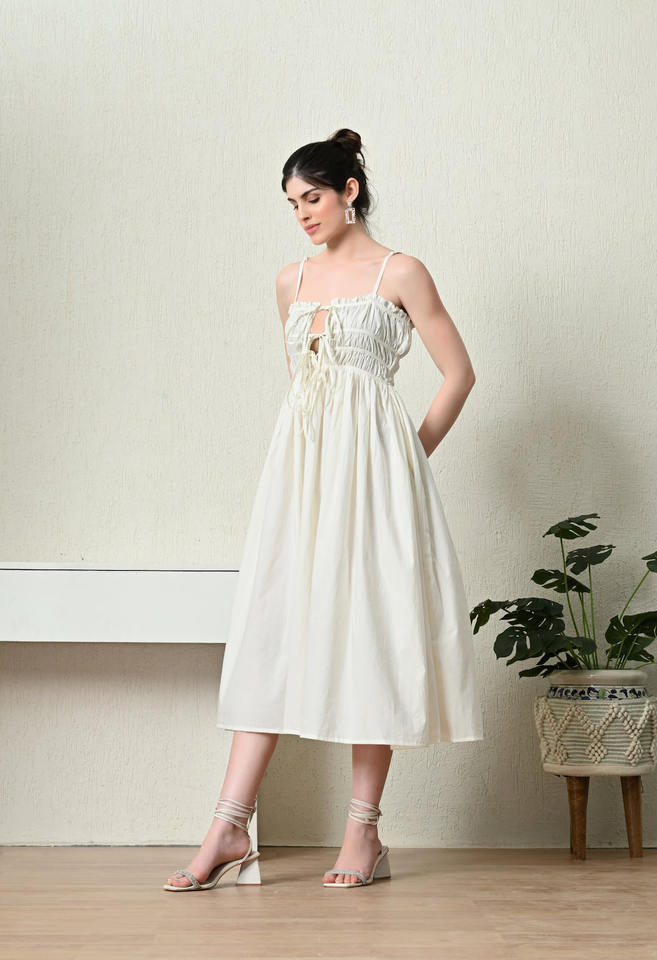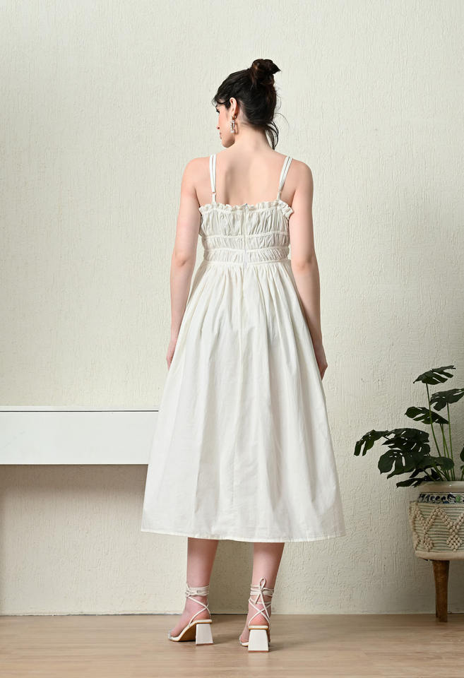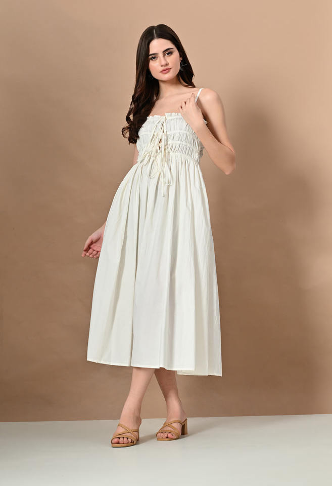 Attractive 2024 Spring Elegant White Cotton Summer Midi Dress for Women Wrap Cotton Fabric Party Wear Square Neck Maxi Dress