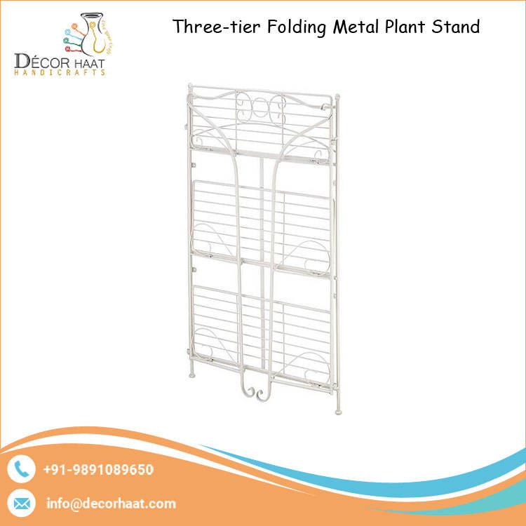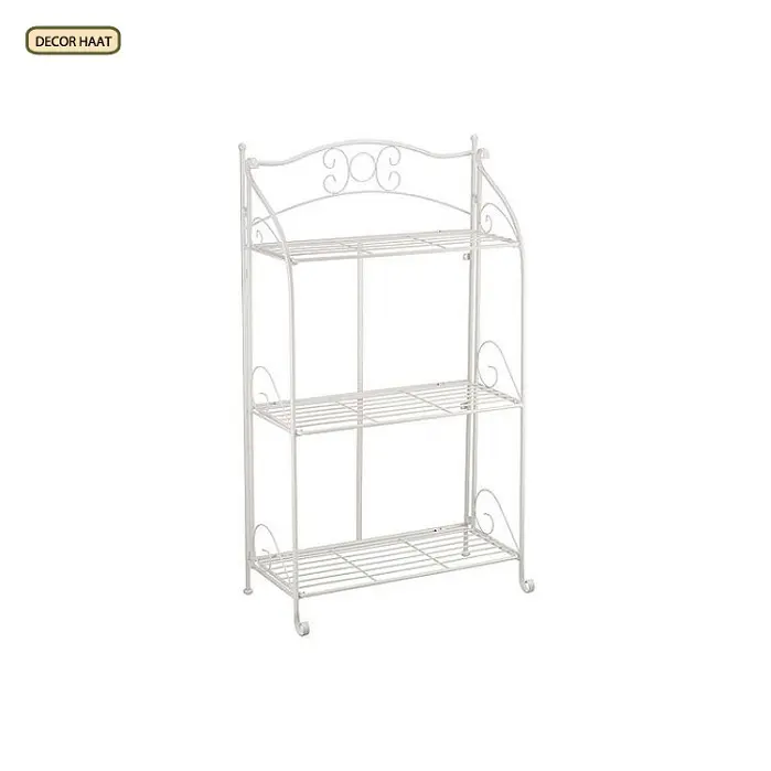 Attractive 3-Tier Pure Iron Planter Stand in White Indoor and Outdoor Use Stylish Flower Pot Display