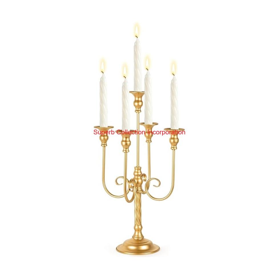 Attractive 5-Arm Gold Metal Candelabra Iron Table Centerpiece and Candle Holder for Christmas Party Event Reception Decoration