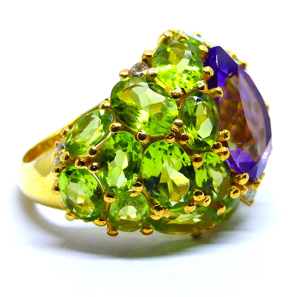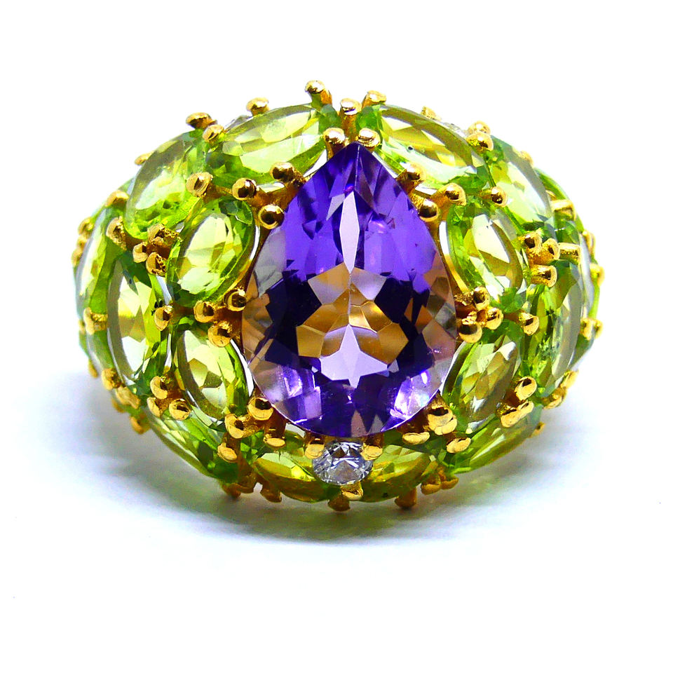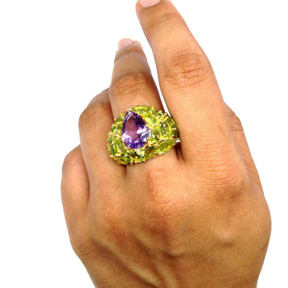 Attractive 925 Sterling Silver Fashionable Trendy Amethyst Peridot Gemstone Wedding Wear Ladies Cocktail Ring