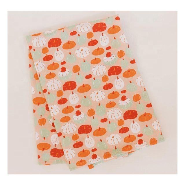 Attractive Abstract Orange Leaves Printed 100% Organic Cotton Eco Friendly GOTS Certificate Custom Size Kitchen Flour Sack Towel