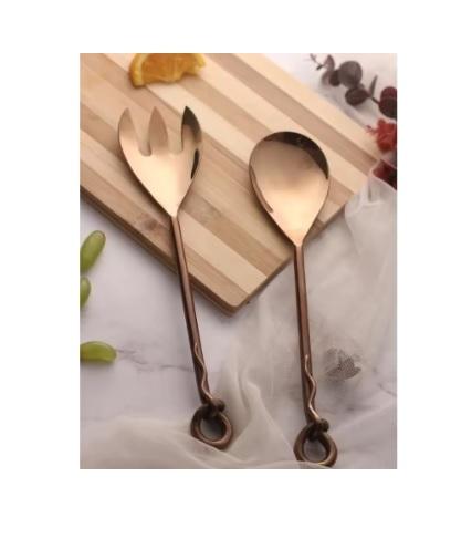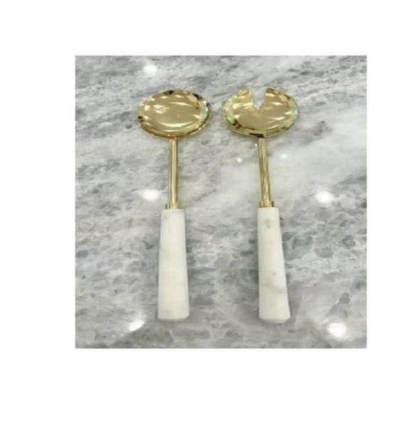 Attractive Brass Metal Salad Server With Long Handle Vintage Simple Design Salad Tools Handmade Spoon Fork Flatware Salad Server